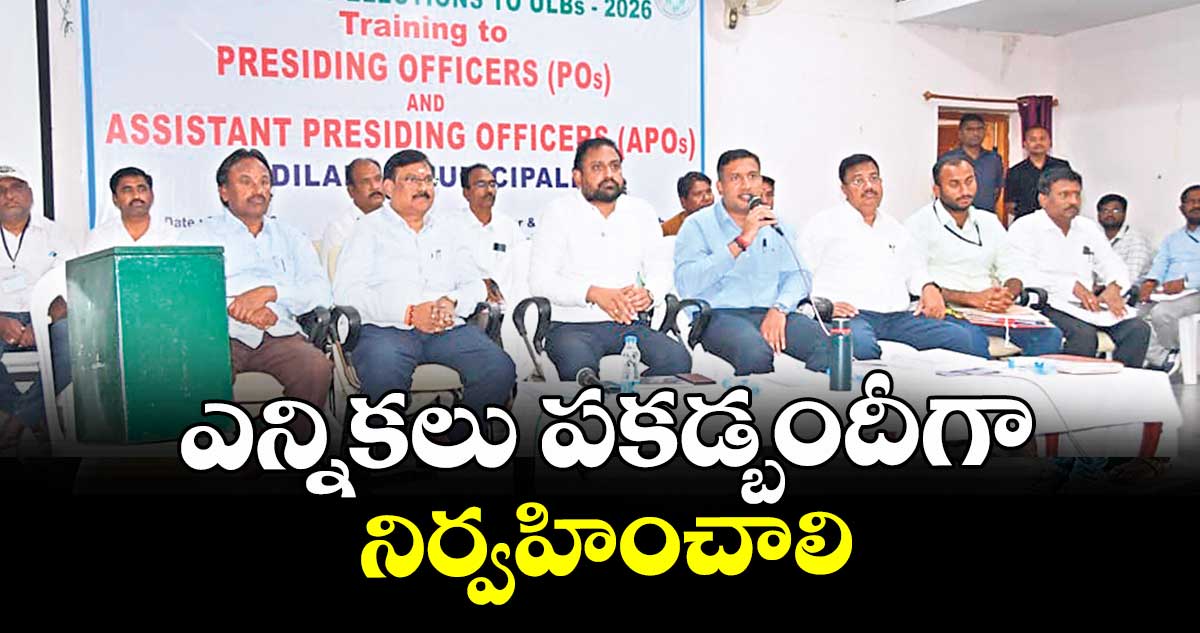 ఆదిలాబాద్/నిర్మల్, వెలుగు: మున్సిపల్ ఎన్నికలు పకడ్బందీగా నిర్వహించాలని, ఇందుకోసం అన్ని ఏర్పాట్లు చేయాలని ఆదిలాబాద్జిల్లా ఎన్నికల అధికారి, కలెక్టర్ రాజర్షి షా అధికారులను ఆదేశించారు. మున్సిపల్ ఎన్నికల నేపథ్యంలో సోమవారం జిల్లా పరిషత్ సమావేశ మందిరంలో ఆదిలాబాద్ మున్సిపాలిటీ ప్రిసైడింగ్, సహాయ ప్రిసైడింగ్ అధికారులకు ట్రైనింగ్ నిర్వహించారు. ఈ సందర్భంగా ఆయన మాట్లాడుతూ.. ఎన్నికల ప్రక్రియలో ప్రిసైడింగ్, సహాయ ప్రిసైడింగ్ అధికారుల పాత్ర ఎంతో కీలకమన్నారు.