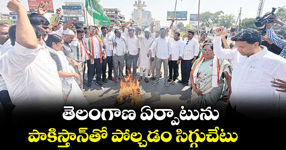 కేంద్ర ప్రభుత్వానికి వ్యతిరేకంగా నినాదాలు చేశారు. బీజేపీ నేతలు తెలంగాణ ప్రజల మనోభావాలను పదేండ్లుగా కించపరుస్తున్నారని మండిపడ్డారు. తెలంగాణ ప్రజలకు వెంటనే క్షమాపణలు చెప్పాలని డిమాండ్చేశారు. డీసీసీ మాజీ అధ్యక్షుడు సాజిద్ ఖాన్, టీపీసీసీ మాజీ జనరల్ సెక్రటరీ గండ్రత్ సుజాత, మార్కెట్ కమిటీ మాజీ చైర్మన్ సంజీవరెడ్డి, రాష్ట్ర కిసాన్ కాంగ్రెస్ జనరల్ సెక్రటరీ శ్రీకాంత్ రెడ్డి తదితరులు పాల్గొన్నారు.