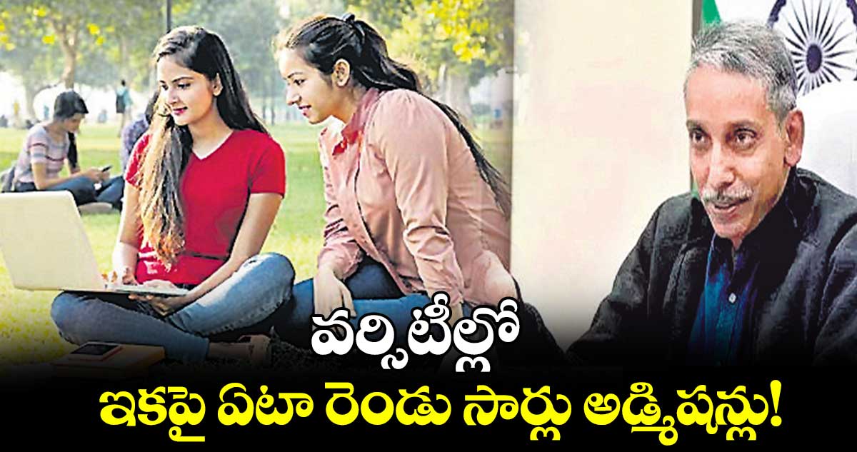 న్యూఢిల్లీ: దేశంలోని యూనివర్సిటీలు, హైయ్యర్ ఎడ్యుకేషన్ ఇన్స్టిట్యూట్లు ఇక నుంచి ఏటా రెండుసార్లు అడ్మిషన్లు తీసుకునేందుకు పర్మిషన్ ఇవ్వనున్నట్టు యూనివర్సిటీ గ్రాంట్స్ చీఫ్ జగదీశ్ కుమార్ తెలిపారు. 2024–-25 అకడమిక్ ఇయర్ నుంచి రెండు అడ్మిషన్ సైకిల్స్ మొదటిది జులై–-ఆగస్టు, రెండోది జనవరి–ఫిబ్రవరి ఉంటాయన్నారు. ‘‘ఇండియన్ వర్సిటీలు ఏటా రెండుసార్లు అడ్మిషన్లు ఇవ్వగలిగితే, బోర్డుల రిజల్ట్స్ లేటు అవడం, హెల్త్, పర్సనల్ ప్రాబ్లమ్స్ వల్ల జులై–-ఆగస్టు సెషన్లో అడ్మిషన్ను తీసుకోలేని స్టూడెంట్లకు ప్రయోజనం చేకూరుతుంది” అని జగదీశ్ కుమార్ పీటీఐతో తెలిపారు.