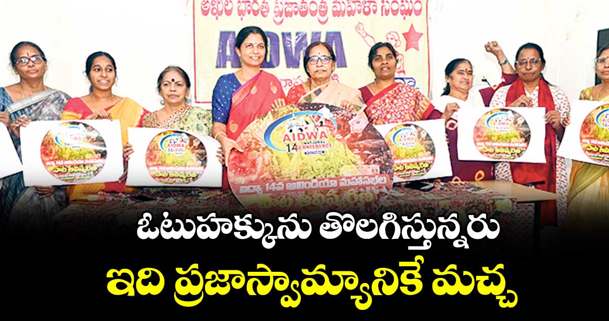 హైదరాబాద్, వెలుగు: దేశంలో మహిళల హక్కులను కాలరాస్తున్న పాలకులు.. చివరికి ప్రజాస్వామ్యంలో వజ్రాయుధమైన ఓటుహక్కును కూడా తొలగిస్తున్నారని అఖిల భారత ప్రజాతంత్ర మహిళా సంఘం (ఐద్వా) జాతీయ కోశాధికారి ఎస్. పుణ్యవతి ఆగ్రహం వ్యక్తం చేశారు. బిహార్లో సర్వే పేరుతో 65 లక్షల మంది ఓటర్లను జాబితా నుంచి తొలగిస్తే.. అందులో 65 శాతం మంది మహిళలే ఉన్నారని ఆవేదన వ్యక్తం చేశారు.