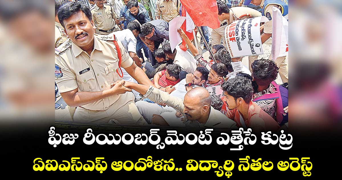 నారాయణగూడ, వెలుగు: రాష్ట్ర ప్రభుత్వం ఫీజు రీయింబర్స్మెంట్ పథకాన్ని ఎత్తివేసేందుకు కుట్ర చేస్తోందని ఏఐఎస్ఎఫ్ నాయకులు ఆరోపించారు. పెండింగ్లో ఉన్న స్కాలర్షిప్, రీయింబర్స్మెంట్ బకాయిలను వెంటనే విడుదల చేయాలని డిమాండ్ చేస్తూ మంగళవారం హిమాయత్నగర్ నుంచి సీఎం నివాసం వరకు ఏఐఎస్ఎఫ్ ఆధ్వర్యంలో పాదయాత్ర నిర్వహించారు. దీంతో విద్యార్థులను పోలీసులు అడ్డుకుని అరెస్టు చేశారు.