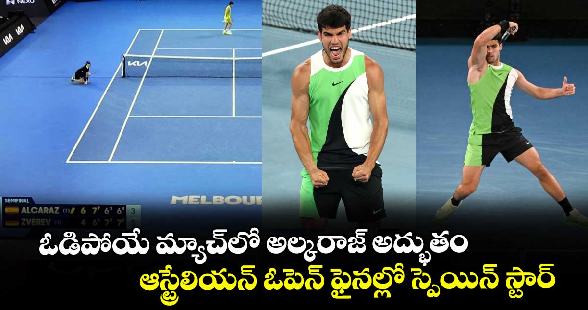 ఆస్ట్రేలియన్ ఓపెన్ 2026 సెమీ-ఫైనల్ 1 పోరు ఫ్యాన్స్ కు ఫుల్ కిక్ ఇచ్చింది. ప్రపంచ నంబర్ వన్ కార్లోస్ అల్కరాజ్, మూడో సీడ్ అలెగ్జాండర్ జ్వెరెవ్ మధ్య జరిగిన సెమీస్ సమరం నువ్వా నేనా అన్నట్టుగా సాగింది. దాదాపు 5 గంటల పాటు జరిగిన వీరి థ్రిల్లింగ్ ఫైట్ లో అల్కరాజ్ అద్భుత విజయం సాధించాడు. శుక్రవారం (జనవరి 30) జరిగిన ఈ మ్యాచ్ లో జ్వెరెవ్ పై 6-4, 7-6 (7-5), 6-7 (3-7), 6-7 (4-7) 7-5 స్కోర్ తో అల్కరాజ్ విజయం సాధించి ఆస్ట్రేలియన్ ఓపెన్ ఫైనల్ కు దూసుకెళ్లాడు. ఒక దశలో జ్వెరెవ్ విజయం ఖాయమనుకున్నా కీలక దశలో స్పెయిన్ స్టార్ తన అత్యుత్తమ ఆట తీరును ప్రదర్శించి మ్యాచ్ గెలిచాడు.