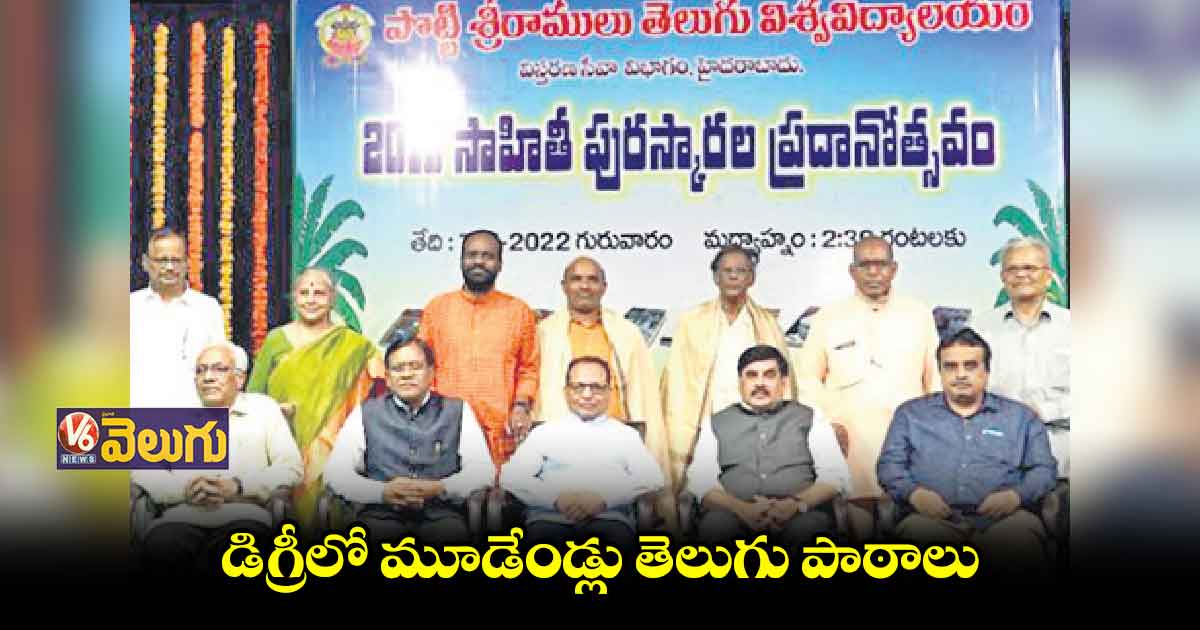 హైదరాబాద్,వెలుగు: గతేడాది నుంచి డిగ్రీ స్థాయి విద్యార్థులకు మూడేండ్లు తెలుగు పాఠాలు బోధిస్తున్నామని ఉన్నత విద్యామండలి చైర్మన్ ఆర్.లింబాద్రి తెలిపారు. గురువారం నాంపల్లిలోని తెలుగు యూనివర్సిటీలో తెలుగు సాహిత్యంలో వివిధ ప్రక్రియల్లో వెలువడిన ఉత్తమ గ్రంథాలకు సాహితీ పురస్కారాల ప్రదాన కార్యక్రమం జరిగింది. చీఫ్ గెస్టుగా హాజరైన లింబాద్రి మాట్లాడుతూ... తెలుగు సాహిత్యం ద్వారా నిబద్ధతతో సమాజాన్ని జాగృత పరుస్తున్న రచయితలను గుర్తించి సత్కరించడం గొప్ప విషయమన్నారు. వీసీ కిషన్రావు మాట్లాడుతూ... వర్సిటీలో ఈ విద్యాసంవత్సరం కొత్తగా 20 కోర్సులను ప్రారంభిస్తున్నట్టు చెప్పారు. రెండు నెలల్లో బాచుపల్లి క్యాంపస్కు వర్సిటీని తరలిస్తామన్నారు. సాహితీ పురస్కారం అందుకున్న వారిలో ఆంధ్రజ్యోతి ఢిల్లీ బ్యూరో చీఫ్ కృష్ణారావు(ఆకాశం కోల్పోయిన పక్షి) ఉన్నారు. కార్యక్రమంలో సాహిత్య అకాడమీ మాజీ చైర్మన్ నందిని సిధారెడ్డి, జేఎన్టీయూ వీసీ కట్టా నర్సింహారెడ్డి, తెలుగు వర్సిటీ రిజిస్ట్రార్ భట్టు రమేశ్ తదితరులు పాల్గొన్నారు.