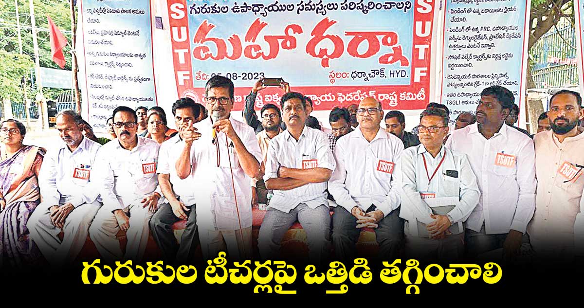 ముషీరాబాద్, వెలుగు: అత్యున్నత ఫలితాలు సాధిస్తున్న గురుకుల పాఠశాలల్లో ఉపాధ్యాయులపై మానసిక ఒత్తిడి తగ్గించాలని ఎమ్మెల్సీ అలుగుబెల్లి నర్సిరెడ్డి కోరారు. శ్రమకు తగిన వేతనాలు ఇవ్వాలని, అన్ని గురుకులాల్లో కామన్ డైరెక్టరేట్అమలు చేయాలని డిమాండ్ చేశారు. శనివారం ఇందిరాపార్క్ ధర్నా చౌక్ లో గురుకుల ఉపాధ్యాయుల మహాధర్నా టీఎస్ యూటీఎఫ్ రాష్ట్ర అధ్యక్షుడు కె జంగయ్య అధ్యక్షతన జరిగింది.ఈ ధర్నాలో ఎమ్మెల్సీ నర్సిరెడ్డి మాట్లాడుతూ ఉపాధ్యాయులు సంతోషంగా పని చేయగలిగితేనే విద్యార్థులకు సంతృప్తికరంగా బోధించగలుగుతారని అన్నారు. మాజీ ఎమ్మెల్యే జూలకంటి రంగారెడ్డి హాజరై మాట్లాడుతూ... గురుకుల ఉపాధ్యాయుల సమస్యలు పరిష్కరించాలని కోరుతూ సీఎం కేసీఆర్కు లేఖ రాస్తామన్నారు.