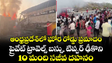 ఆంధ్రప్రదేశ్లో ఘోర రోడ్డు ప్రమాదం: ప్రైవేట్ ట్రావెల్స్ బస్సు, టిప్పర్ ఢీకొని 10 మంది సజీవ దహనం