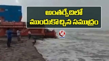 తూర్పు గోదావరి జిల్లా అంతర్వేది దగ్గర సముద్రం ముందుకొచ్చింది. అలలు పెద్ద ఎత్తున ఎగిసిపడుతుండడంతో తీరంలోని రెండు షాపులు ధ్వంసమయ్యాయి. ముందుకు చొచ్చుకువ