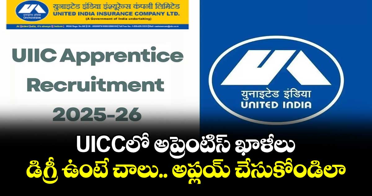 యునైటెడ్ ఇండియా ఇన్సూరెన్స్ కంపెనీ (యూఐఐసీ) అప్రెంటిస్ ఖాళీల భర్తీకి నోటిఫికేషన్ విడుదల చేసింది. ఆసక్తి, అర్హత గల అభ్యర్థులు ఆన్లైన్లో అప్లై చేసుకోవచ్చు. దరఖాస్తు ఫారమ్ను సమర్పించడానికి చివరి తేదీ 2026, జనవరి 20.