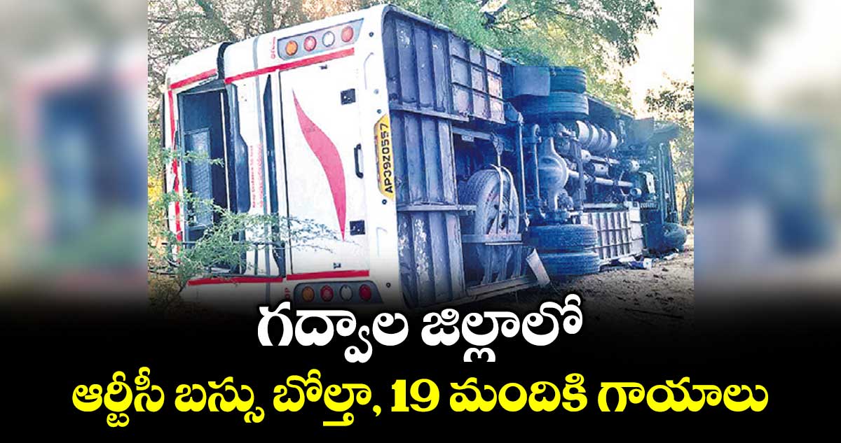 అలంపూర్, వెలుగు : ఆర్టీసీ బస్సు బోల్తా పడడంతో 19 మందికి గాయాలు అయ్యాయి. ఈ ఘటన గద్వాల జిల్లా ఇటిక్యాలపాడు స్టేజీ సమీపంలో గురువారం తెల్లవారుజామున జరిగింది. స్థానికులు తెలిపిన వివరాల ప్రకారం... ఏపీలోని అనంతపూర్ డిపోకు చెందిన సూపర్ లగ్జరీ బస్సు 19 మంది ప్రయాణికులతో బుధవారం రాత్రి హైదరాబాద్ నుంచి అనంతపూర్కు బయలుదేరింది. గురువారం తెల్లవారుజామున 4 గంటలకు గద్వాల జిల్లా ఉండవెల్లి మండలం ఇటిక్యాలపాడు స్టేజీ సమీపంలోకి రాగానే బస్సు అదుపుతప్పి బోల్తా పడింది.