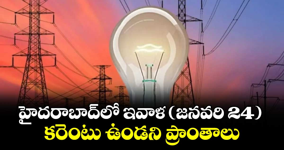 శనివారం (జనవరి 24) ఉదయం 10 గంటల నుంచి మధ్యాహ్నం ఒంటిగంట వరకు డీడీ కాలనీ, ఆహోబిల మాఠం, నల్లకుంటలో కరెంట్ఉండదన్నారు. మధ్యాహ్నం రెండు గంటల నుంచి సాయంత్రం ఐదు గంటల వరకు శాస్త్రి నగర్, అజామాబాద్, విద్యానగర్, శివం, సాయి మధురానగర్ ప్రాంతాల్లో విద్యుత్ సరఫరా ఉండదన్నారు.