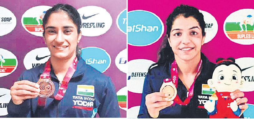 జియాన్ (చైనా): ఆసియా రెజ్లింగ్ చాంపియన్ షిప్లో ఇండియా మహిళలు స్వర్ణం లేకుండానే పోరాటం ముగించారు. గోల్డ్ మెడల్ తెస్తారని ఆశలు పెట్టుకున్న సాక్షి మాలిక్ , వినేశ్ ఫోగట్ కూడా కాంస్యాలతోనే సరిపెట్టా రు. సాక్షి(62 కేజీలు), వినేశ్ (53కేజీలు) ఇద్దరూ శుక్రవారం జరిగిన తమ క్వార్టర్ ఫైనల్ బౌట్స్లో ఓడిపోయారు. అయితే వీరి ప్రత్యర్థులు ఫైనల్ చేరడంతో రెపిచేజ్ లో ఆడి కాంస్య పతకాలు సాధించారు. కాంస్య పతక పోరులో వినేశ్ 8-–1తో కినైయ్ పంగ్ (చైనా )పై విజయం సాధించగా, సాక్షి 9–6తో హ్యోన్ గ్యోం గ్ మన్ ( ఉత్తర కొరియా)పై గెలిచింది. మంజు కుమారి(59 కిలోలు), దివ్యాకక్రాన్ (68 కిలోలు) కూడా కంచు పతకాలు నెగ్గిన సంగతి తెలిసిందే.