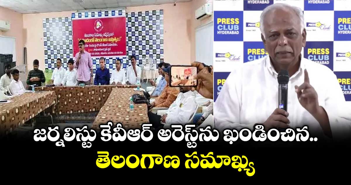 ఏపీ పోలీసులు తెలంగాణ జర్నలిస్టు కేవీఆర్ను ఏపీ పోలీసులు అరెస్టు చేయడాన్ని తెలంగాణ సమాఖ్య తీవ్రంగా ఖండించింది. హైదరాబాద్ సోమాజిగూడ ప్రెస్ క్లబ్లో తెలంగాణ సమాఖ్య ఆధ్వర్యంలో జరిగిన రౌండ్ టేబుల్ సమావేశంలో సీనియర్ జర్నలిస్టు పాశం యాదగిరి మాట్లాడుతూ.. కేవీఆర్ ఎలాంటి తప్పు చేయలేదని, అభిప్రాయ స్వేచ్ఛను అణచివేయడమే ఈ చర్య వెనుక ఉద్దేశమని అన్నారు.
