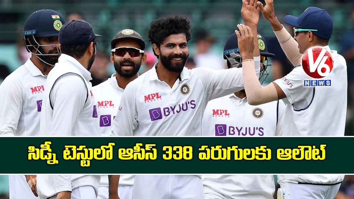 సిడ్నీలో ఇండియా, ఆస్ట్రేలియా జట్ల మధ్య మూడో టెస్టు తొలి ఇన్నింగ్స్లో ఆసీస్ 338 పరుగులకు ఆలౌట్ అయింది. మొదటిరోజు ఆట ముగిసే సమయానికి రెండు వికెట్లు నష్టపోయి 166 పరుగులు చేసింది. రెండో రోజు ఆట ప్రారంభించిన ఆసీస్.. మరో 172 పరుగులు చేసి ఆలౌట్ అయింది. ఆసీస్ బ్యాట్స్మన్ స్టీవ్ స్మిత్ చెలరేగి 226 బంతుల్లో 16 ఫోర్లతో 131 పరుగులు చేశారు. మరో బ్యాట్మన్ లబూషేన్ 196 బంతుల్లో 11 ఫోర్లతో 91 పరుగులు చేశాడు. రహానే బౌలింగ్లో ఆసీస్ 206 పరుగుల వద్ద లబూషేన్ మూడో వికెట్గా వెనుదిరిగాడు. ఆ తర్వాత వచ్చిన ఆటగాళ్లేవరూ క్రీజులో నిలవలేకపోయారు. దాంతో స్మిత్కు జోడీ కరువైంది. అయినా కూడా చివరి వరకూ పోరాడి ఆసీస్ స్కోరును 338 పరుగులకు చేర్చాడు. జడేజా నాలుగు వికెట్లు, బుమ్రా, సైనీ చేరో రెండు వికెట్లు, సిరాజ్ ఒక వికెట్ తీశారు.