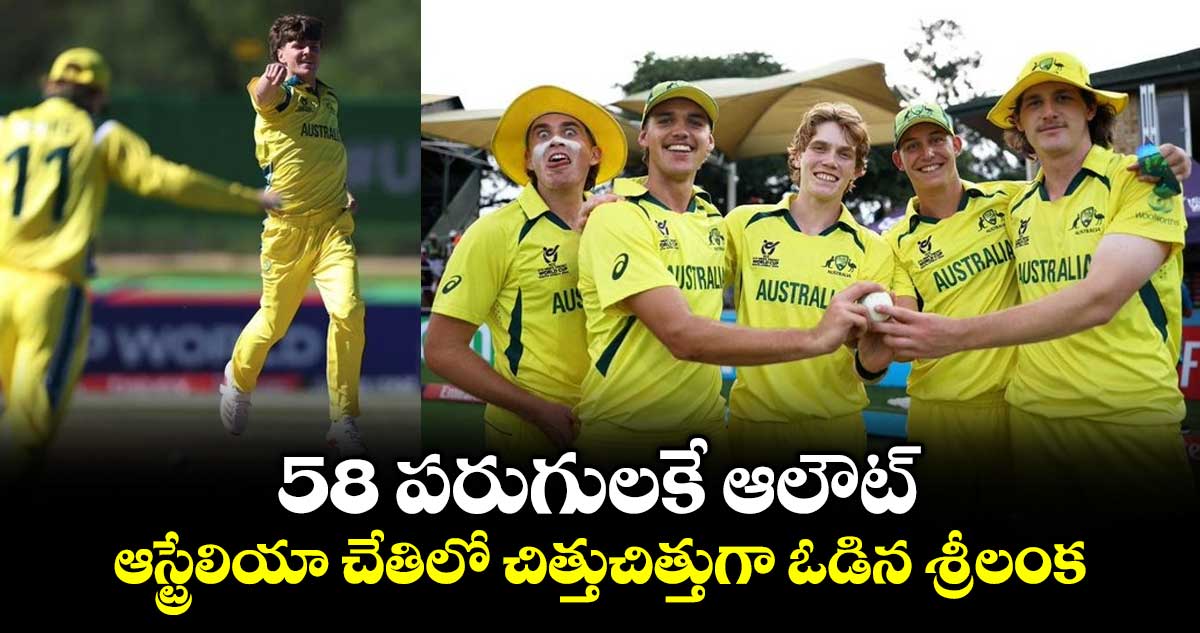 అండర్-19 వరల్డ్ కప్ లో భాగంగా శ్రీలంక జట్టు ఆస్ట్రేలియా చేతిలో ఓడింది. పసికూన కంటే దారుణంగా ఆడిన లంక జట్టు ఊహించని పరాజయాన్ని చవిచూసింది. ఆసీస్ బౌలింగ్ ధాటికి పూర్తిగా చేతులెత్తేసింది. శుక్రవారం (జనవరి 23) విండ్హోక్లోని నమీబియా క్రికెట్ గ్రౌండ్లో జరిగిన మ్యాచ్ లో శ్రీలంకపై ఆస్ట్రేలియా 9 వికెట్ల తేడాతో భారీ విజయాన్ని అందుకుంది. మొదట బ్యాటింగ్ చేసిన శ్రీలంక కేవలం 58 పరుగులకే ఆలౌటైంది. ఛేజింగ్ లో ఆస్ట్రేలియా 12 ఓవర్లలో వికెట్ నష్టానికి 62 పరుగులు చేసి గెలిచింది. ఈ టోర్నీలో శ్రీలంకదే అత్యల్ప స్కోర్ కావడం గమనార్హం.