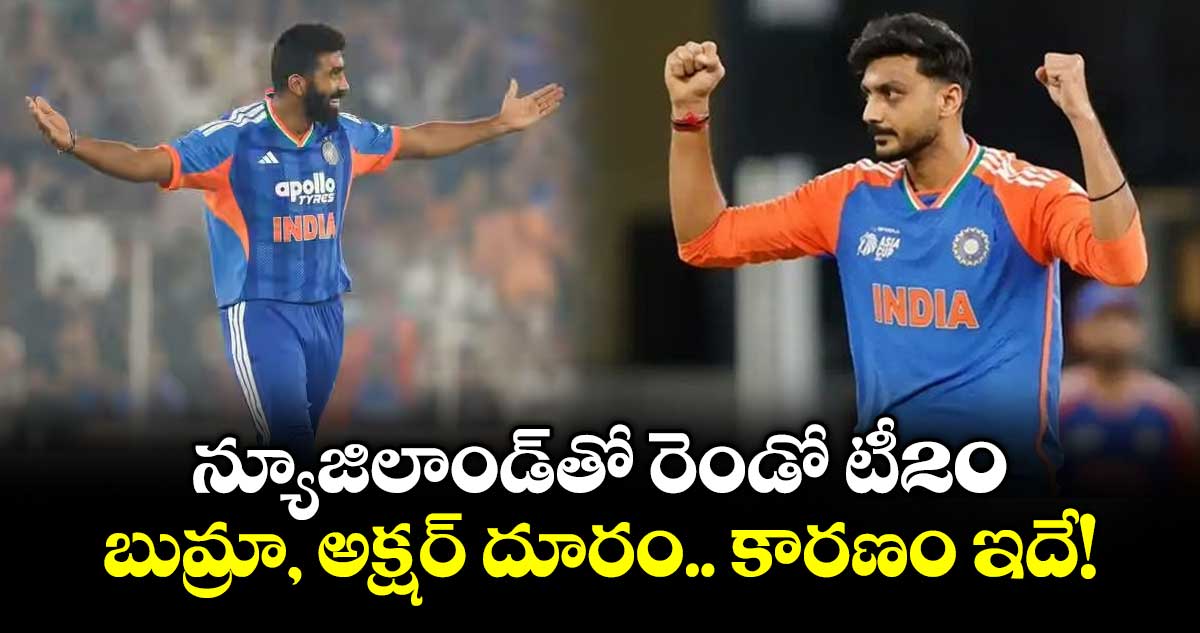 న్యూజిలాండ్ తో శుక్రవారం (జనవరి 23) జరుగుతున్న రెండో టీ20 మ్యాచ్ కు టీమిండియా స్టార్ ప్లేయర్స్ జస్ప్రీత్ బుమ్రా, అక్షర్ పటేల్ దూరమయ్యారు. వరల్డ్ కప్ ముందు బుమ్రా, అక్షర్ ఆడకపోవడంతో వీరిద్దరికీ ఏమైందని ఫ్యాన్స్ కలవరపడుతున్నారు. వీరిద్దరూ ఆడకపోవడానికి కారణం లేకపోలేదు. స్టార్ పేసర్ బుమ్రాకు రెండో టీ20 మ్యాచ్ లో రెస్ట్ ఇచ్చారు. పని భారం కారణంగా బుమ్రాను రెండో టీ20 నుంచి తప్పించారు. వరల్డ్ కప్ సమయానికి బుమ్రాను తాజాగా ఉంచాలని జట్టు యాజమాన్యం భావిస్తుంది. దీంతో బుమ్రా స్థానంలో హర్షిత్ రానాకు ప్లేయింగ్ 11లో చోటు దక్కింది. మూడో టీ20కి ఈ స్టార్ పేసర్ అందుబాటులో ఉండే అవకాశం ఉంది.