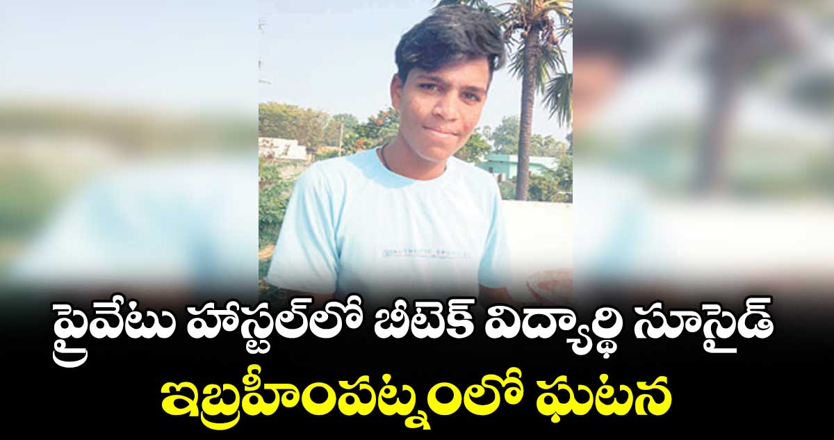 ఇబ్రహీంపట్నం, వెలుగు: ప్రైవేటు హాస్టల్లో ఉరేసుకొని బీటెక్ స్టూడెంట్ చనిపోయాడు. గురునానక్ కాలేజీలో బీటెక్ సెకండియర్ చదువుతున్న కందిమల్ల సాయి (20) ఇబ్రహీంపట్నంలోని దివ్య రెడ్డి బాయ్స్ హాస్టల్లో ఉంటున్నాడు. శుక్రవారం తన గదిలో ఆత్మహత్య చేసుకున్నాడు.