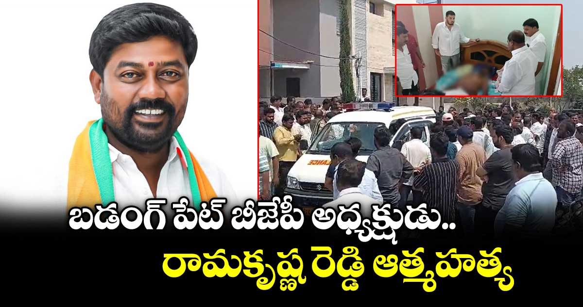 గ్రేటర్ హైదరాబాద్లో బడంగ్పేట్-1 బిజెపి అధ్యక్షుడు రాళ్లగూడెం రామకృష్ణ రెడ్డి(45) ఆత్మహత్య చేసుకున్నారు. ఏప్రిల్ 15న ఉదయం మీర్పేట్ పోలీస్ స్టేషన్ పరిధిలోని కింగ్స్ వే విల్లాస్లో ఉన్న తన నివాసంలో రామకృష్ణ రెడ్డి ఫ్యాన్కు ఉరివేసుకున్నారు. . సమాచారం అందుకున్న పోలీసులు వెంటనే ఘటనా స్థలానికి చేరుకుని మృతదేహాన్ని పరిశీలించారు. అనంతరం పోస్టుమార్టం నిమిత్తం ఉస్మానియా ఆస్పత్రికి తరలించారు.