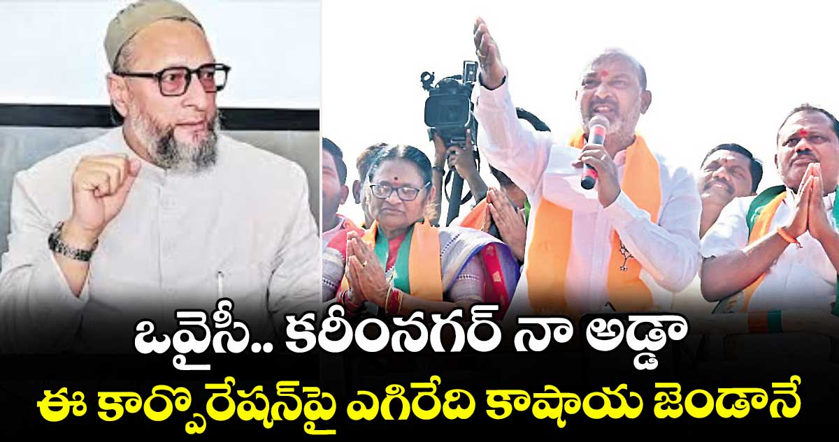 కరీంనగర్, వెలుగు: కరీంనగర్ కార్పొరేషన్పై ఎగిరేది కాషాయ జెండానేనని కేంద్ర హోంశాఖ సహాయ మంత్రి పేర్కొన్నారు. ‘‘ఒవైసీ.. కరీంనగర్ నా అడ్డా.. ఇక్కడ పచ్చజెండా (ఎంఐఎం)ను పాతిపెట్టే వరకు విశ్రమించ” అని తేల్చి చెప్పారు. గతంలో చెప్పినట్లుగానే కేసీఆర్ను ఫాంహౌజ్కు పంపి గులాబీ జెండాను పాతరేశానని,ఈ సారి పచ్చ జెండాను పాకిస్తాన్కు పంపుతానని హెచ్చరించారు.