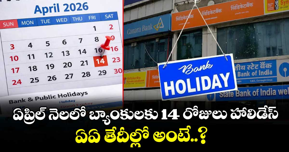ఏప్రిల్ నెల వచ్చేసింది. కొత్త ఆర్థిక సంవత్సరం ఆరంభంతో పాటు వరుస పండుగలు, సెలవులతో బ్యాంకులు బిజీగా మారనున్నాయి. వివిధ కారణాలతో 2026 ఏప్రిల్లో దాదాపు 14 రోజుల పాటు బ్యాంకులు మూతపడనున్నాయి. ఇందులో కొన్ని దేశవ్యాప్త సెలవులు ఉంటే.. మరికొన్ని ప్రాంతీయ పండుగలు ఉన్నాయి. రిజర్వు బ్యాంక్ హాలిడే క్యాలెండర్ ప్రకారం తేదీల వారీగా సెలవుల వివరాలు ఇప్పుడు తెలుసుకుందాం. మీరు బ్యాంకుకు వెళ్లాలనుకుంటే ఖచ్చితంగా వీటిని పరిశీలించి ప్లాన్ చేసుకోండి.