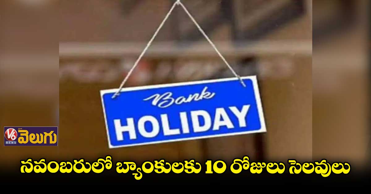 నవంబర్ నెలలో బ్యాంకులకు దాదాపు 10 రోజుల పాటు సెలవులు ఉన్నాయి. ఇందుకు సంబంధించిన జాబితాను రిజర్వ్ బ్యాంక్ ఆఫ్ ఇండియా విడుదల చేసింది. ఈ సెలవుల్లో నాలుగు ఆదివారాలతో పాటు రెండో, నాలుగో శనివారాలు ఉన్నాయి. బ్యాంకు సెలవులు అనేవి ఆయా రాష్ట్రాల్లో జరుపుకునే పండుగల ఆధారంగా మారుతూ ఉంటాయి.