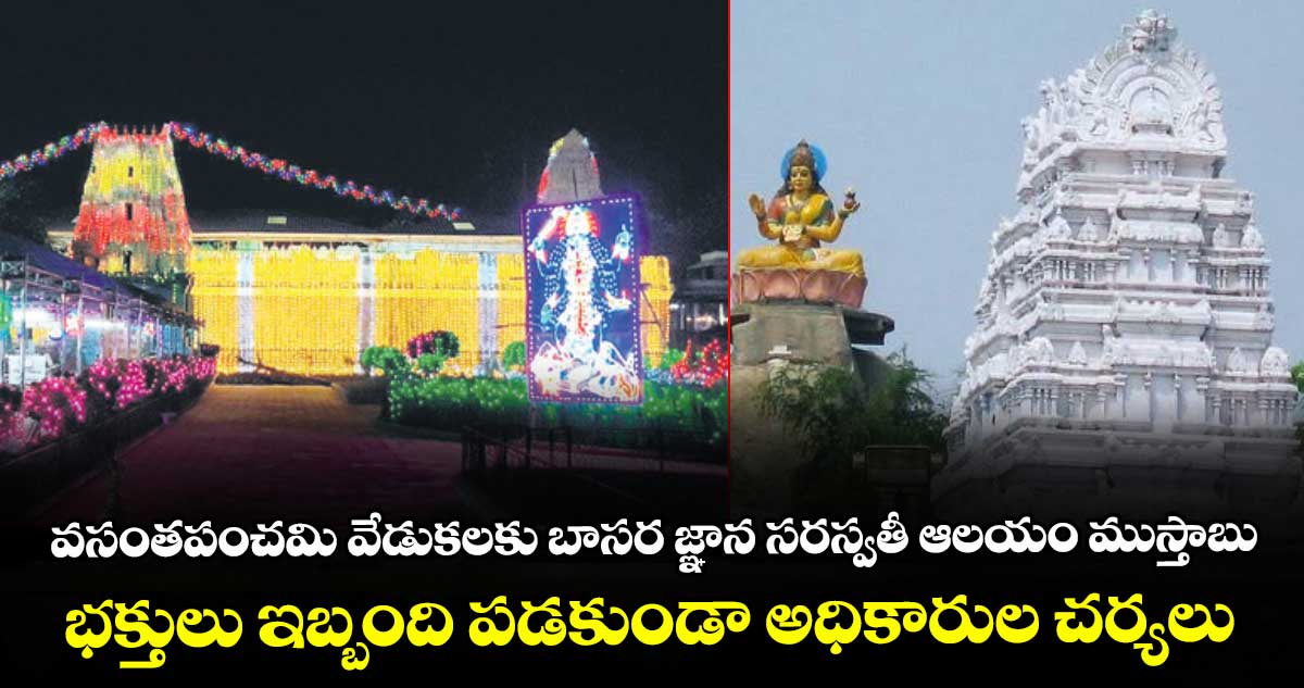 బాసర, వెలుగు : వసంత పంచమి వేడుకలకు బాసర జ్ఞాన సరస్వతీ ఆలయం ముస్తాబైంది. వేడుకల్లో భాగంగా శుక్రవారం ఉదయం 9.30 గంటలకు ప్రత్యేక పూజలు ప్రారంభించనున్నారు. ప్రభుత్వం తరఫున మంత్రి కొండా సురేఖ, ఎమ్మెల్యే రామారావు పటేల్ సరస్వతీ అమ్మవారికి పట్టువస్త్రాలు సమర్పించనున్నారు. వేడుకల కోసం ఆలయాన్ని రంగురంగుల విద్యుద్దీపాలతో ముస్తాబు చేశారు.