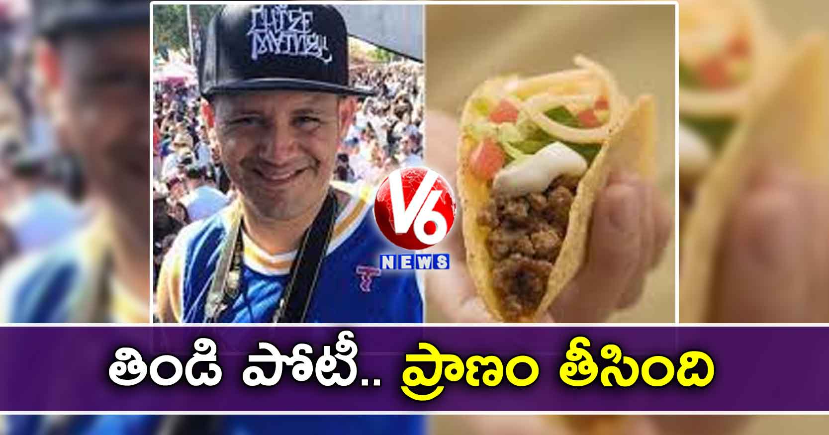 మా హోటల్లో వడ్డిం చే పేద్ద దోస మొత్తం మిగల్చకుండా తినండి.. బిల్లు కట్టాల్సిన పనిలేదు. మేం పెట్టే రుచికరమైన బిర్యానీ మొత్తం లాగిం చండి. ప్రైజ్ కొట్టేయండి. ఇలా హోటళ్ల వారు తరచూ తిండిపోటీలు పెట్టి బిజినెస్ పెం చుకునేందుకు చూస్తుం టారు. అమెరికాలో ఇట్లాంటి తిండిపోటీకి పోయి ఓ వ్యక్తి ప్రాణాలు పోగొట్టుకున్నా డు.కాలిఫోర్ని యాలో మంగళవారం రాత్రి మైనర్ లీగ్బేస్ బాల్ గేమ్ నిర్వహించారు. ఈ సందర్భం గాఫ్రెస్నో గ్రిజిలీస్ అనే సంస్థ టాకో ఈటింగ్ కాం టెస్ట్ పెట్టిం ది. టాకో అనేది మెక్సికో ప్రజలు తయారు చేసే సంప్రదాయ వంటకం. చిన్న చపాతీ లాంటి దాంట్లో వెజ్ లేదా నాన్ వెజ్ ఐటమ్స్ పెట్టి తయారు చేస్తారు.దీంతో తిండి అంటే బాగా ఇష్టపడే చాలామంది ఉత్సాహంతో ఇక్కడికి క్యూ కట్టారు. డానా హచిం గ్స్ (41)కూడా పోటీకి సై అన్నా డు. పోటీ ప్రారంభమైం ది. కొద్దిసేపటికి హచింగ్స్ తో పాటు మరో ఇద్దరు మాత్రమే బరిలో మిగిలారు. గెలవాలన్న ఆతురతతో హచిం గ్స్ నమలకుం డా మింగుతున్నా డు. ఏడు నిమిషాలు గడిచేసరికి ఒక్కసారిగా ముందుకు తూలిపోయి టేబుల్ పై పడిపోయాడు. వెం టనే అతడ్ని హాస్పిటల్ కు తీసు-కెళ్లగా అప్పటికే చనిపోయినట్లు డాక్టర్లు తెలిపారు.