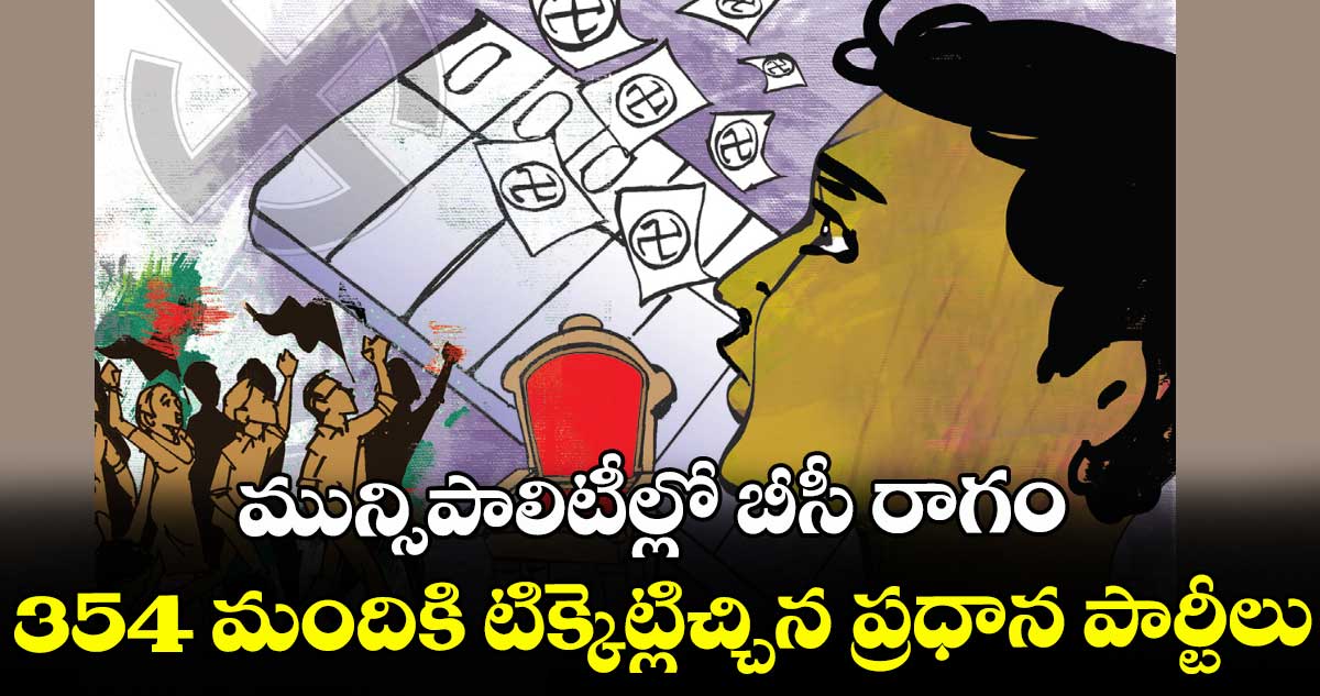మిగతా 10 మున్సిపాలిటీల్లో 50 వార్డులు అధికారికంగా బీసీలకు దక్కాయి. మిగతా 210 స్థానాలు ఎస్సీ, ఎస్టీ, జనరల్కు కేటాయించారు. కాగా, ప్రధాన రాజకీయ పార్టీలైన కాంగ్రెస్, బీఆర్ఎస్, బీజేపీ ఏకంగా 354 మంది బీసీలకు బీఫారాలు అందించాయి. మూడు ప్రధాన పార్టీలు బీసీ రిజర్వేషన్ స్థానాల్లోనే కాకుండా జనరల్ స్థానాల్లోనూ బీసీలకు జై కొట్టాయి.