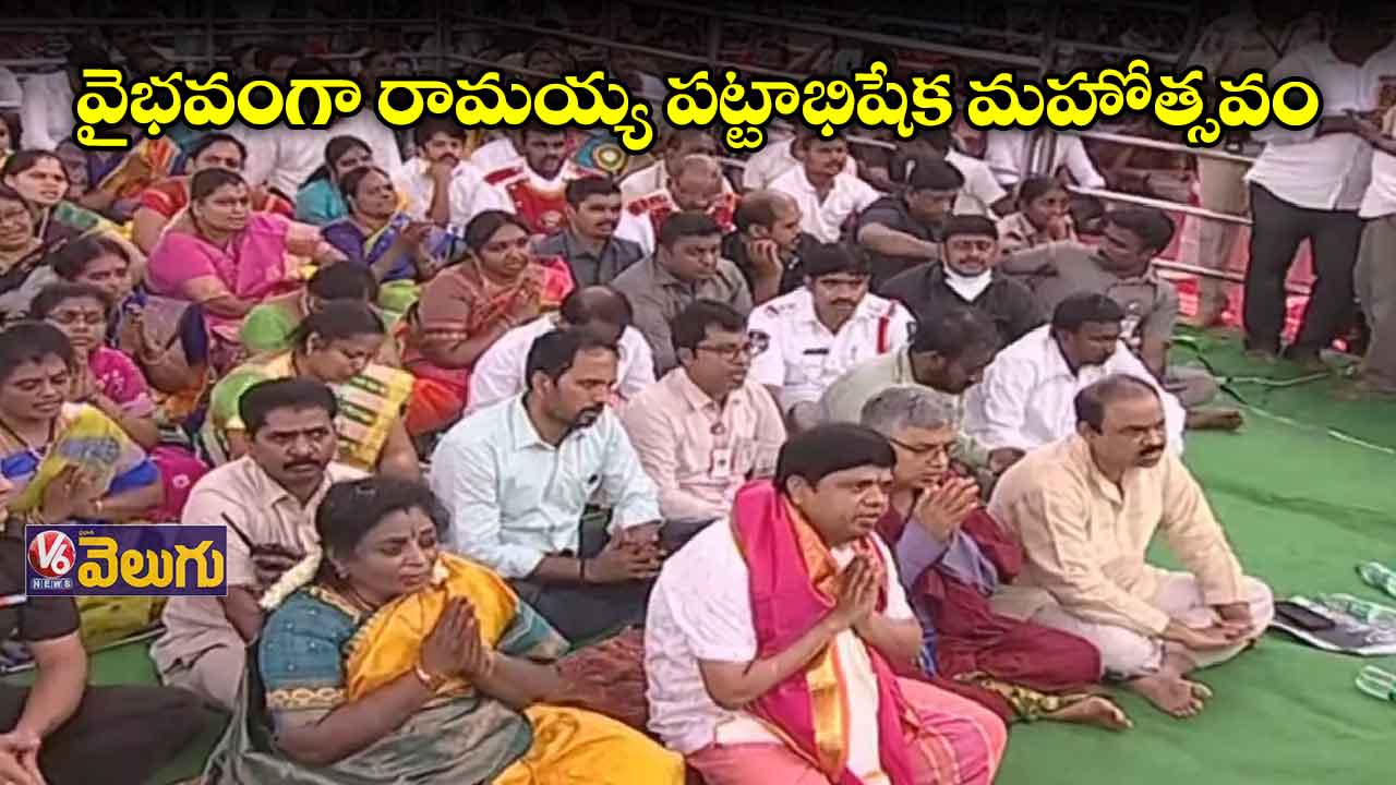 పట్టాభిషేక మహోత్సవంలో భాగంగా...పాదుకలను శ్రీరాముడికి సమర్పించారు ఆలయ పూజారులు. రాజదండం, రాజ ముద్రిక, రాజ ఖడ్గం, ఛత్రం, చామరలు, రామదాసు పచ్చల పతకం ఇలా ఒక్కోటిగా శ్రీరాముడికి అలంకరించారు. తర్వాత వైభవంగా రామచంద్రునికి కిరీటధారణ చేశారు. చివరగా వివిధ నదుల తీర్థాలతో సీతా లక్ష్మణ సమేత శ్రీరాముల వారికి అభిషేకం నిర్వహించారు.