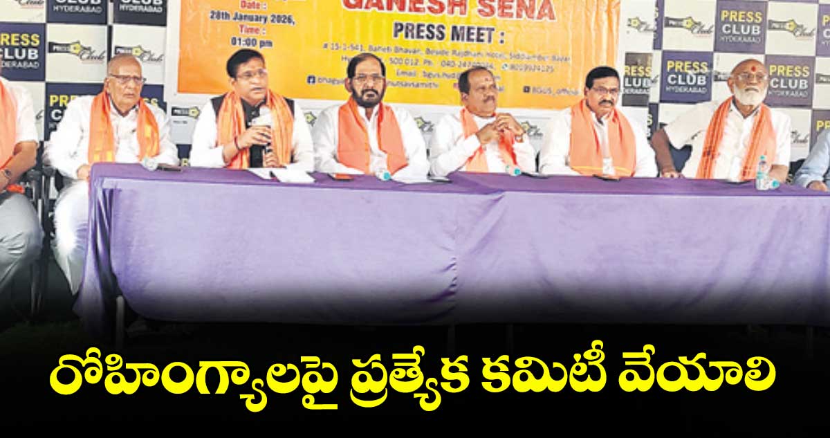 పంజాగుట్ట, వెలుగు: సిటీలో అక్రమంగా స్థిరపడిన రోహింగ్యాలను గుర్తించి, వెనక్కి పంపడానికి ప్రత్యేక టాస్క్ ఫోర్స్ ఏర్పాటు చేయాలని భాగ్యనగర్ గణేశ్ ఉత్సవ సమితి డిమాండ్ చేసింది. బుధవారం సోమాజిగూడ ప్రెస్ క్లబ్లో సమితి, ధర్మ రక్షణ సభ అధ్యక్షుడు జీ. రాఘవరెడ్డి మాట్లాడుతూ.. నగరంలో అన్ని రంగాలలో రోహింగ్యాలు స్థిరపడుతున్నారని, వారి వల్ల స్థానికులకు ఉపాధి అవకాశాలు లేకుండా పోతున్నాయని ఆవేదన వ్యక్తం చేశారు.