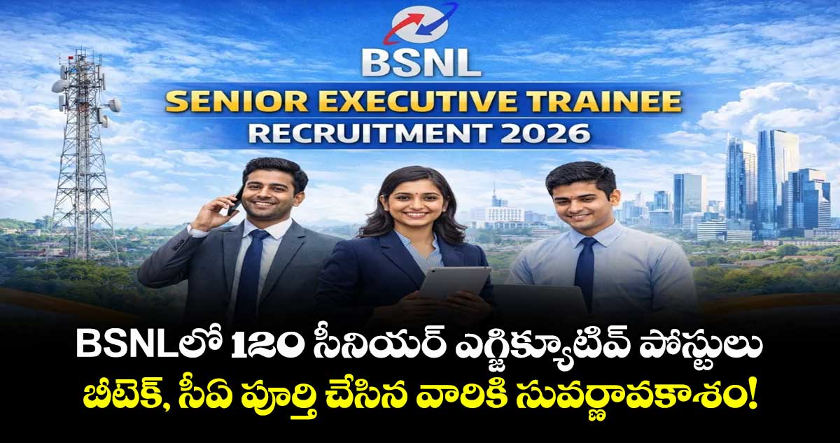 కేంద్ర ప్రభుత్వరంగ సంస్థ భారత్ సంచార్ నిగమ్ లిమిటెడ్ (బీఎస్ఎన్ఎల్) సీనియర్ ఎగ్జిక్యూటివ్ పోస్టుల భర్తీకి నోటిఫికేషన్ విడుదల చేసింది.