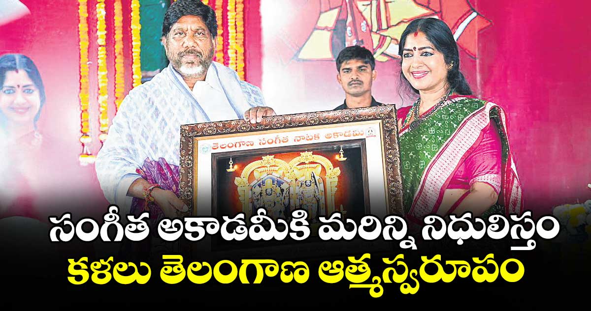 బషీర్బాగ్, వెలుగు: దేవాలయాలు, పర్యాటకం, సాంస్కృతిక రంగాల సమన్వయంతో రాష్ట్రాభివృద్ధికి దోహదపడే విధానాన్ని తీసుకొస్తే అకాడమీకి మరిన్ని నిధులిస్తామని డిప్యూటీ సీఎం భట్టి విక్రమార్క అన్నారు. తెలంగాణ సంగీత నాటక అకాడమీ ఆధ్వర్యంలో ఆదివారం బషీర్బాగ్ ఎల్బీ ఇండోర్ స్టేడియంలో వాగ్గేయకారుడు భక్తరామదాసు 393వ జయంత్యుత్సవాలు ఘనంగా జరిగాయి. సంగీత దర్శకుడు సాలూరు జ్యోతి ప్రజ్వలన చేసి వేడుకలను ప్రారంభించారు. ఈ సందర్భంగా భట్టి విక్రమార్క మాట్లాడుతూ కళలు తెలంగాణ ఆత్మస్వరూపమని, ప్రతి గ్రామంలోనూ ఏదో ఒక కళారూపం కనిపించడం రాష్ట్ర ప్రత్యేకత అన్నారు.