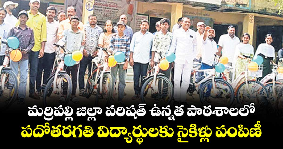 వేములవాడ రూరల్, వెలుగు:- మర్రిపల్లి జిల్లా పరిషత్ ఉన్నత పాఠశాలలో శనివారం పదోతరగతి విద్యార్థులు 11 మందికి బీజేపీ ఆధ్వర్యంలో సైకిళ్లు పంపిణీ చేశారు. కేంద్ర హోంశాఖ సహాయ మంత్రి బండి సంజయ్ ప్రధాని మోదీ గిఫ్ట్గా వీటిని పంపించినట్లు బీజేపీ జిల్లా మాజీ అధ్యక్షుడు ప్రతాప రామకష్ణ, వేములవాడ మాజీ ఎంపీపీ బండ మల్లేశం తెలిపారు. కార్యక్రమంలో సర్పంచ్ లాస్య, మాజీ సర్పంచ్ కటకం మల్లేశం, నాయకులు గోపు బాలరాజు, చెట్టిపల్లి రవికిశోర్ తదితరులు పాల్గొన్నారు.