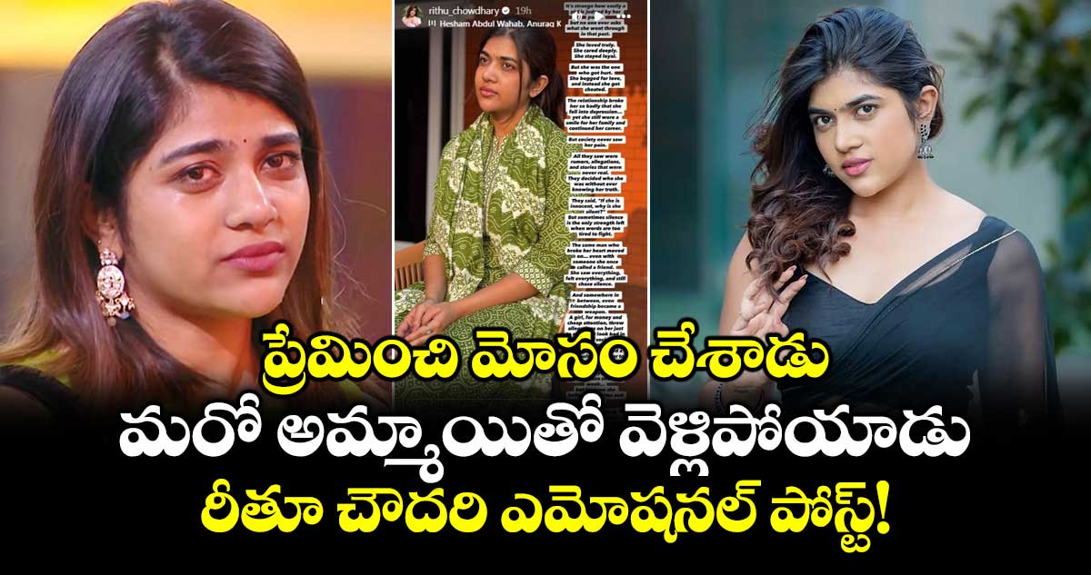 బుల్లితెర నటిగా, బిగ్ బాస్ బ్యూటీగా పేరు తెచ్చుకున్న రీతూ చౌదరి మరో సారి వార్తల్లో నిలిచారు. లేటెస్ట్ గా ఈ ముద్దుగుమ్మ సోషల్ మీడియా వేదిక షేర్ చేసిన పోస్ట్ ఇప్పుడు హాట్ టాపిక్ గా మారింది. నిత్యం తన ఫోటోలతోనే అభిమానులను అలరించే రీతూ.. ఈ సారి తన వ్యక్తిగత జీవితంలోని జరిగిన సంఘటనను తెలుపుతూ ఆవేదనను వెళ్లగక్కింది. ఒక అమ్మాయి ప్రేమలో విఫలమైతే ఈ సమాజం ఆమెను ఎంత హీనంగా చూస్తుందో వివరిస్తూ రాసుకోచ్చింది. ప్రస్తుతం ఈ పోస్ట్ నెట్టింట వైరల్ అవుతుంది.