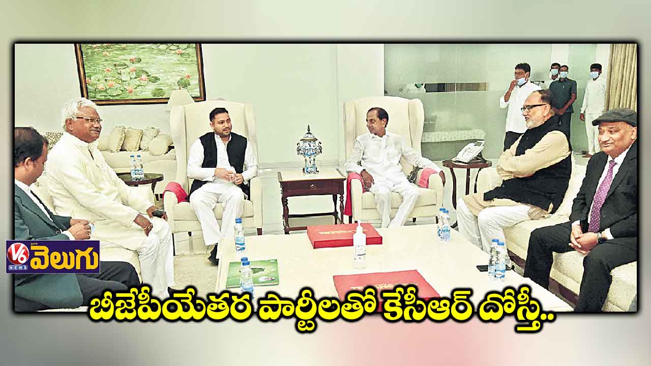 నిరుడు డిసెంబర్లో తమిళనాడులోని శ్రీరంగంలో రంగనాథస్వామిని దర్శించుకునేందుకు కుటుంబ సమేతంగా వెళ్లిన కేసీఆర్.. మరుసటి రోజు తమిళనాడు సీఎం స్టాలిన్ తో సమావేశమయ్యారు. గత వారం సీపీఐ, సీపీఎం జాతీయ స్థాయి లీడర్లు కలుసుకున్నారు. హైదరాబాద్లో పార్టీ కేంద్ర కమిటీ సమావేశంలో పాల్గొనేందుకు వచ్చిన సీపీఎం జాతీయ ప్రధాన కార్యదర్శి సీతారాం ఏచూరి, కేరళ సీఎం పినరయ్ విజయన్, త్రిపుర మాజీ సీఎం మాణిక్ సర్కార్ తదితరులతో భేటీ అయ్యారు. అదే రోజు ఏఐవైఎఫ్ మహాసభల్లో పాల్గొనేందుకు వచ్చిన సీపీఐ జాతీయ ప్రధాన కార్యదర్శి డి.రాజా, ఆ పార్టీ పార్లమెంటరీ పక్ష నేత బినయ్ విశ్వం, కేరళ మంత్రి రాజన్ కూడా కేసీఆర్ను కలిశారు. బీజేపీకి వ్యతిరేకంగా ఉన్న పార్టీలను కలుస్తామని, అదే కోవలో కేసీఆర్ను కలిసినట్లు సీపీఎం లీడర్లు మరుసటి రోజు మీడియాకు క్లారిటీ ఇచ్చారు. తాజాగా ఆర్జేడీ లీడర్లతో సమావేశమయ్యారు. 2018 ఎన్నికల టైమ్లోనే కేసీఆర్.. జాతీయ స్థాయిలో ఫెడరల్ ఫ్రంట్ ఏర్పాటుకు పావులు కదిపారు. బీజేపీ, కాంగ్రెస్కు వ్యతిరేకంగా జాతీయ స్థాయిలో మమతా బెనర్జీ, నవీన్ పట్నాయక్, కుమారస్వామిని కలిసి మంతనాలు జరిపారు. అవేవీ కొలిక్కి రాకపోవటంతో సైలెంటయ్యారు. కేసీఆర్ ప్రయత్నాలు బెడిసికొట్టాయని నాడు జాతీయ స్థాయిలో చర్చ జరిగింది. ఇప్పుడు బీజేపీ నుంచి రాజకీయంగా ఎదురుదాడి పెరగడం.. స్థానికంగా ప్రతికూలత వెంటాడుతుండటంతో కేసీఆర్ ఇతర పార్టీలతో మళ్లీ టచ్లో ఉంటున్నారని సొంత పార్టీ లీడర్లే చెప్తున్నారు.