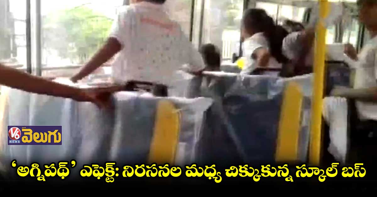 పోలీసులు రంగ ప్రవేశం చేసి, స్కూల్ బస్కు దారి ఇవ్వడంతో పిల్లలందరూ ఊపిరి పీల్చుకున్నారు. ‘అగ్నిపథ్’పై బీహార్లో శుక్రవారం (జూన్ 18న) రెండోరోజూ నిరసనలు ఉధృతంగా కొనసాగాయి. బీజేపీ కార్యాలయానికి ఆందోళనకారులు నిప్పంటించారు. నవాడాలో గురువారం (జూన్ 16న) బీజేపీ కార్యాలయాన్ని దగ్ధం చేశారు.