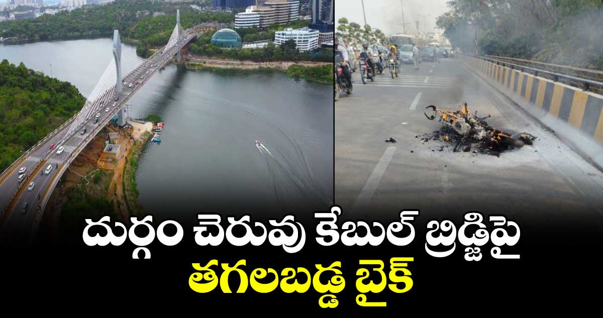 హైదరాబాద్ మాదాపూర్ దుర్గం చెరువు కేబుల్ బ్రిడ్జిపై వెళ్తున్న రన్నింగ్ బైకులో మంటలు చెలరేగాయి. అప్రమత్తమైన వాహనదారుడు బైకును పక్కనే పార్కింగ్ చేయడంతో ప్రమాదం తప్పింది. బైకు మంటల్లో పుర్తిగా కాలిపోయింది.