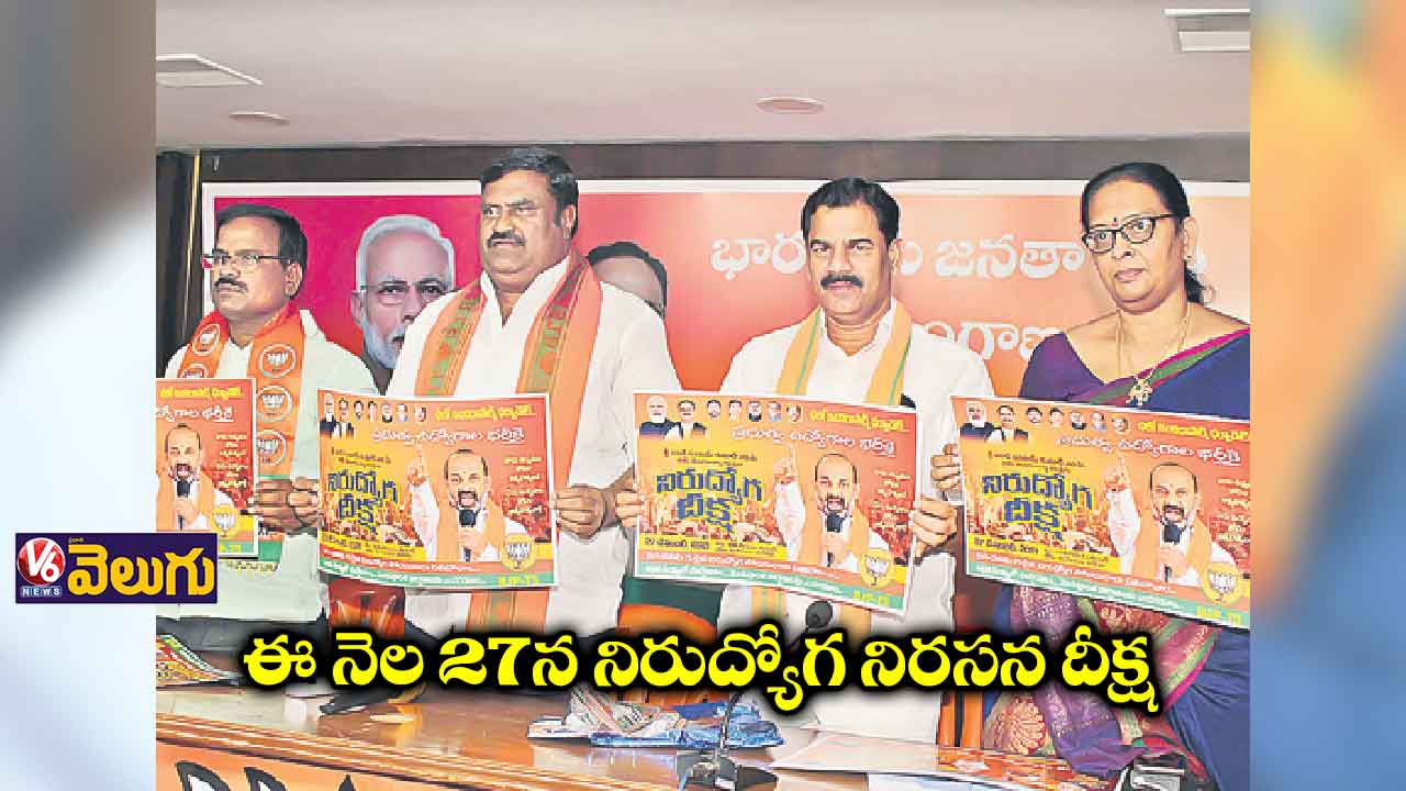 హైదరాబాద్, వెలుగు: రాష్ట్రంలో ఉద్యోగాల భర్తీకి నోటిఫికేషన్లు ఇవ్వాలనే డిమాండ్తో ఈ నెల 27న రాష్ట్ర బీజేపీ ఆధ్వర్యంలో హైదరాబాద్లోని ఇందిరాపార్క్ ధర్నా చౌక్ వద్ద నిర్వహించనున్న ఒక రోజు నిరుద్యోగ నిరసన దీక్షను సక్సెస్ చేయాలని పార్టీ నేతలు పిలుపునిచ్చారు. హైదరాబాద్, రంగారెడ్డి, మెదక్, నల్గొండ ఉమ్మడి జిల్లాలతో పాటు సిటీకి దగ్గరగా ఉన్న ఇతర జిల్లాల నుంచి పెద్ద సంఖ్యలో నిరుద్యోగ యువతను దీక్షకు తరలించే ఏర్పాట్లలో నేతలు బిజీగా ఉన్నారు. దీనికి సంబంధించి చర్చించేందుకు అన్ని జిల్లాల పార్టీ నేతలతో గురువారం పార్టీ స్టేట్ ఆఫీసులో సమావేశం ఏర్పాటు చేశారు. దీక్షకు ప్రభుత్వం అనుమతి ఇవ్వకపోతే కోర్టు నుంచి పర్మిషన్ తీసుకొని నిర్వహిస్తామని స్పష్టం చేస్తున్నారు. నిరుద్యోగ దీక్షకు సంబంధించిన పోస్టర్ను బుధవారం పార్టీ స్టేట్ ఆఫీసులో బీజేపీ రాష్ట్ర ప్రధాన కార్యదర్శి దుగ్యాల ప్రదీప్ రావు, ఉపాధ్యక్షుడు మనోహార్ రెడ్డిలు రిలీజ్ చేశారు. ఈ దీక్షను విజయవంతం చేయాలని కోరారు.