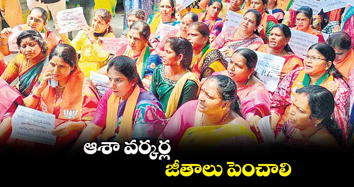 ప్రభుత్వ హామీ ప్రకారం ఆశా వర్కర్ల వేతాన్ని రూ.9వేల నుంచి రూ.18 వేలకు పెంచాలని డిమాండ్చేశారు. కరోనా టైంలో ప్రాణాలను పణంగా పెట్టి, పనిచేసిన ఆశాల సేవలపై చిన్నచూపు తగదన్నారు. ఈఎస్ఐ, పీఎఫ్ సౌకర్యం కల్పించాలని కోరారు. ఆశాల సమస్యలను పరిష్కరించకపోతే రాష్ట్ర వ్యాప్తంగా ఆందోళనకు దిగుతామని హెచ్చరించారు. డీఎంఈ జాయింట్ డైరెక్టర్ డా.పద్మజకు వినతి పత్రం అందజేశారు.