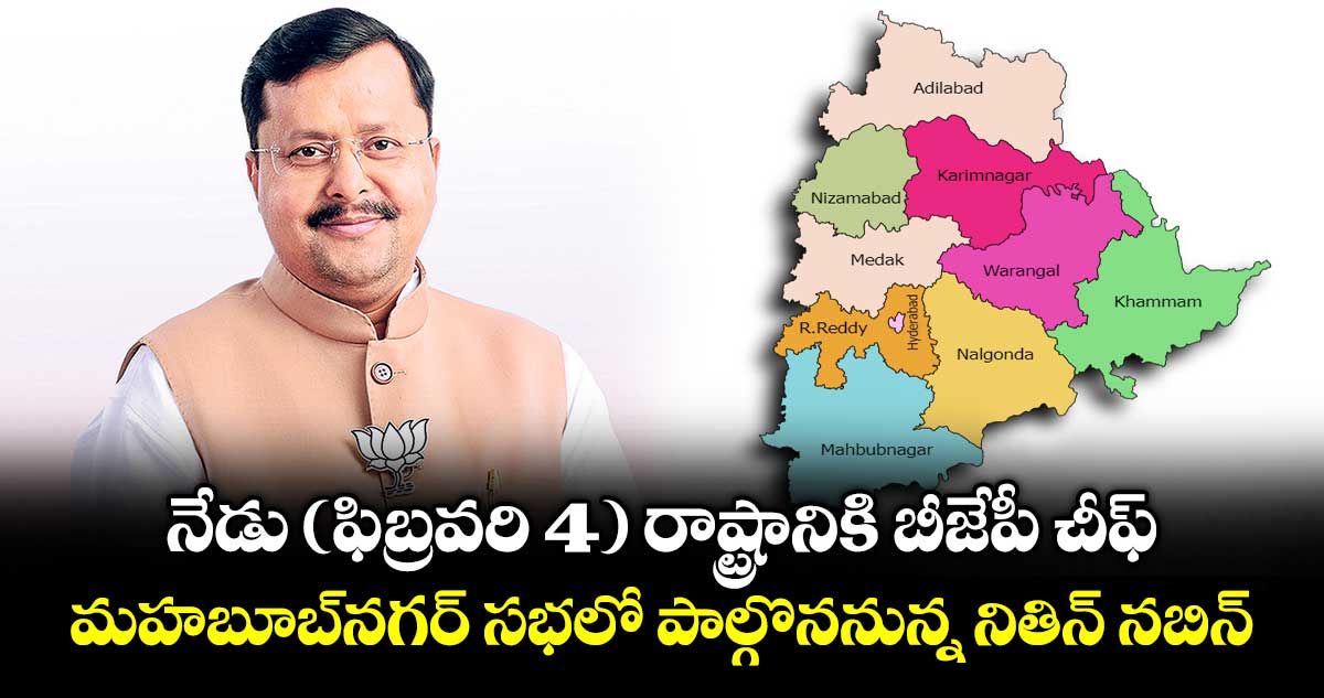 నితిన్ నబిన్ రాష్ట్రానికి రావడం పార్టీ శ్రేణుల్లో నూతన ఉత్సాహాన్ని నింపుతుందని బీజేపీ రాష్ట్ర అధ్యక్షుడు ఎన్.రాంచందర్ రావు అన్నారు. మున్సిపల్ ఎన్నికల వేళ ఆయన పర్యటన కీలకమైందని చెప్పారు. మహబూబ్నగర్ సభను అన్ని మున్సిపాలిటీల్లో లైవ్ స్ర్టీమింగ్ చేస్తామని తెలిపారు. పార్టీకి వెన్నెముక కార్యకర్తలేనని, బూత్ స్థాయి నుంచి పార్టీని బలోపేతం చేసేందుకే ఈ సమ్మేళనం నిర్వహిస్తున్నామన్నారు. ఈ సభకు పాలమూరు, చుట్టుపక్కల ప్రాంతాల కార్యకర్తలు భారీగా తరలిరావాలని కోరారు.
