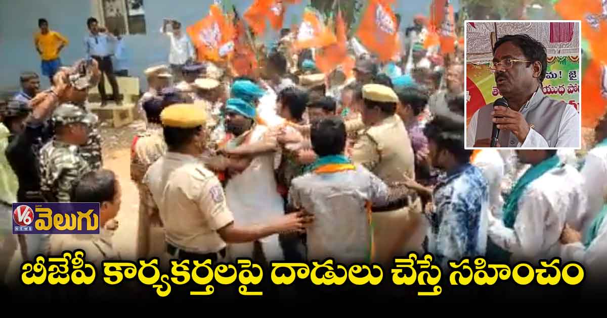 పర్మిషన్ లేదంటూ పోలీసులు బీజేపీ ముట్టడిని అడ్డుకున్నారు. దీంతో పోలీసులు, బీజేపీ కార్యకర్తల మధ్య వాగ్వాదం జరిగింది. ముంపు రైతులకు ప్రభుత్వం నుంచి హామీ వచ్చే వరకు అక్కడి నుంచి కదిలే ప్రసక్తిలేదని బీజేపీ నాయకులు స్పష్టం చేయడంతో... పోలీసులు వారిపై లాఠీ చార్జీకి దిగారు. దీంతో కొంతమంది కార్యకర్తలకు గాయాలయ్యాయి. ఈ క్రమంలో కొంత సమయం పాటు అక్కడ ఉద్రిక్త పరిస్థితులు నెలకొన్నాయి. పెద్ద ఎత్తున మోహరించిన పోలీసులు... నిరసనకు దిగిన బీజేపీ కార్యకర్తలను అరెస్ట్ చేసి స్థానిక పోలీస్ స్టేషన్ కు తీసుకెళ్లారు.