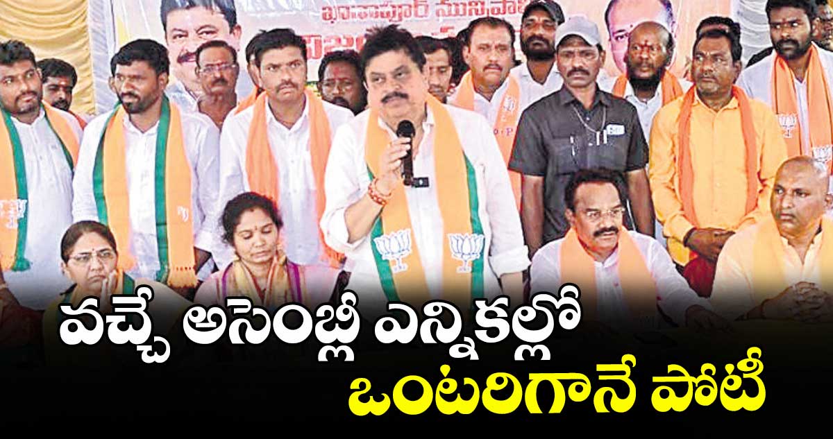 ఖానాపూర్, వెలుగు : తెలంగాణలో వచ్చే అసెంబ్లీ ఎన్నికల్లో బీజేపీ ఒంటరిగానే పోటీ చేస్తుందని ఆ పార్టీ రాష్ట్ర అధ్యక్షుడు రాంచందర్రావు స్పష్టం చేశారు. ఖానాపూర్ మున్సిపల్ పీఠాన్ని దక్కించుకోవడంతో సోమవారం బీజేపీ ఆధ్వర్యంలో విజయోత్సవ ర్యాలీ నిర్వహించారు. ఈ కార్యక్రమానికి రాంచందర్రావు హాజరయ్యారు. ఈ సందర్భంగా ఆయన మాట్లాడుతూ... ఖానాపూర్ మున్సిపాలిటీ అభివృద్ధికి అన్ని విధాలా కృషి చేస్తామన్నారు.