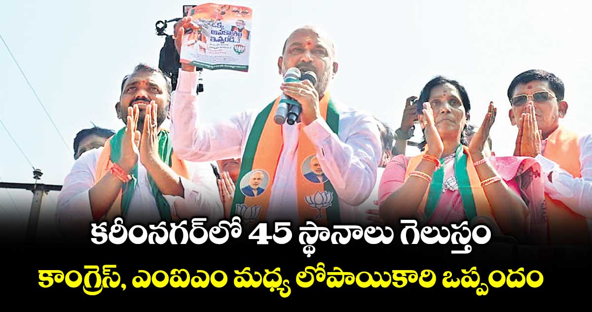 కరీంనగర్, వెలుగు : ‘కరీంనగర్ కార్పొరేషన్ ఎన్నికల్లో వార్వన్సైడ్గా మారింది, మొత్తం 66 డివిజన్లలో 45 స్థానాలను బీజేపీ కైవసం చేసుకుంటుంది’ అని కేంద్ర హోంశాఖ సహాయమంత్రి బండి సంజయ్కుమార్ ధీమా వ్యక్తం చేశారు.