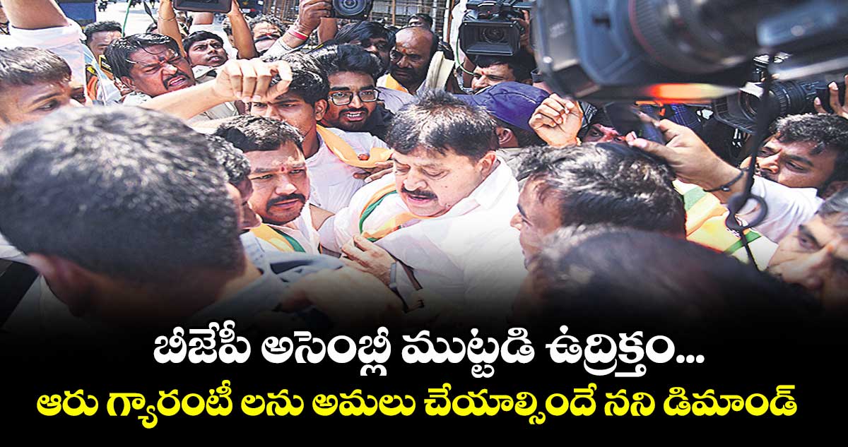 హైదరాబాద్, వెలుగు: బీజేపీ చేపట్టిన చలో అసెంబ్లీ తీవ్ర ఉద్రిక్తంగా మారింది. ప్రజలకిచ్చిన ఆరు గ్యారంటీలను అమలు చేయాలంటూ సోమవారం నాంపల్లి నుంచి అసెంబ్లీ వైపు నేతలు, కార్యకర్తలు దూసుకురావడంతో పోలీసులు వారిని అడ్డుకున్నారు. ఈ క్రమంలో పోలీసులకు, బీజేపీ కార్యకర్తలకు మధ్య వాగ్వవాదం, తోపులాట జరిగింది.