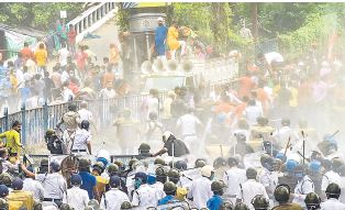 - టియర్ గ్యాస్, వాటర్ క్యానన్లు ప్రయోగించిన పోలీసులు