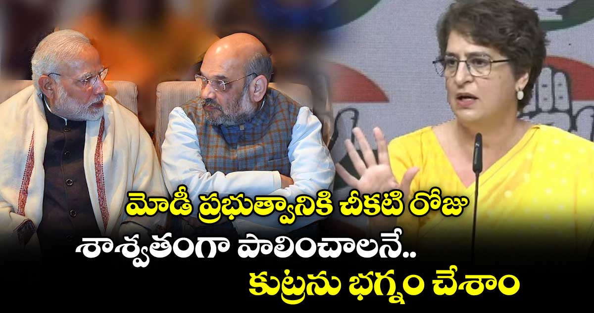 దేశంలో ప్రజాస్వామ్యాన్ని బలహీనపరిచి.. శాశ్వతంగా పరిపాలించటానికే కేంద్రం రాజ్యాంగ సవరణ బిల్లు తీసుకొచ్చిందన్నారామె. ఈ కుట్రను ప్రజాస్వామ్య ప్రతిపక్ష పార్టీలు అడ్డుకుని.. బీజేపీ కుట్రను చేధించామన్నారామె. కేంద్రంపై అంతర్జాతీయంగా తీవ్రమైన ఒత్తిడి ఉందని.. ఇప్పుడు ఆ విషయం స్పష్టంగా బయటపడిందని.. దేశ ప్రజలకు కూడా ఇది కనిపిస్తుందన్నారు ప్రియాంక గాంధీ.