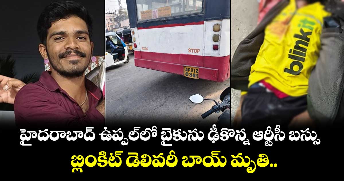 హైదరాబాద్ లో ఘోర రోడ్డు ప్రమాదం జరిగింది. హైదరాబాద్ లోని ఉప్పల్ లో బైకును ఆర్టీసీ బస్సు ఢీకొనడంతో మహేష్ అనే బ్లింకిట్ డెలివరీ బాయ్ మృతి చెందాడు. శుక్రవారం ( ఫిబ్రవరి 6 ) జరిగిన ఈ ఘటనకు సంబంధించి వివరాలిలా ఉన్నాయి..మహాబాబుబాబాద్ కి చెందిన 22 ఏళ్ళ మహేష్ ఉప్పల్ లో ఉంటూ బ్లింకిట్ డెలివరీ బాయ్ గా పని చేస్తున్నాడు. రోజులాగే ఇవాళ కూడా ఉప్పల్ లో డెలివరీలు చేస్తున్న మహేష్ బస్సు ఢీకొనడంతో అక్కడికక్కడే మృతి చెందాడు.