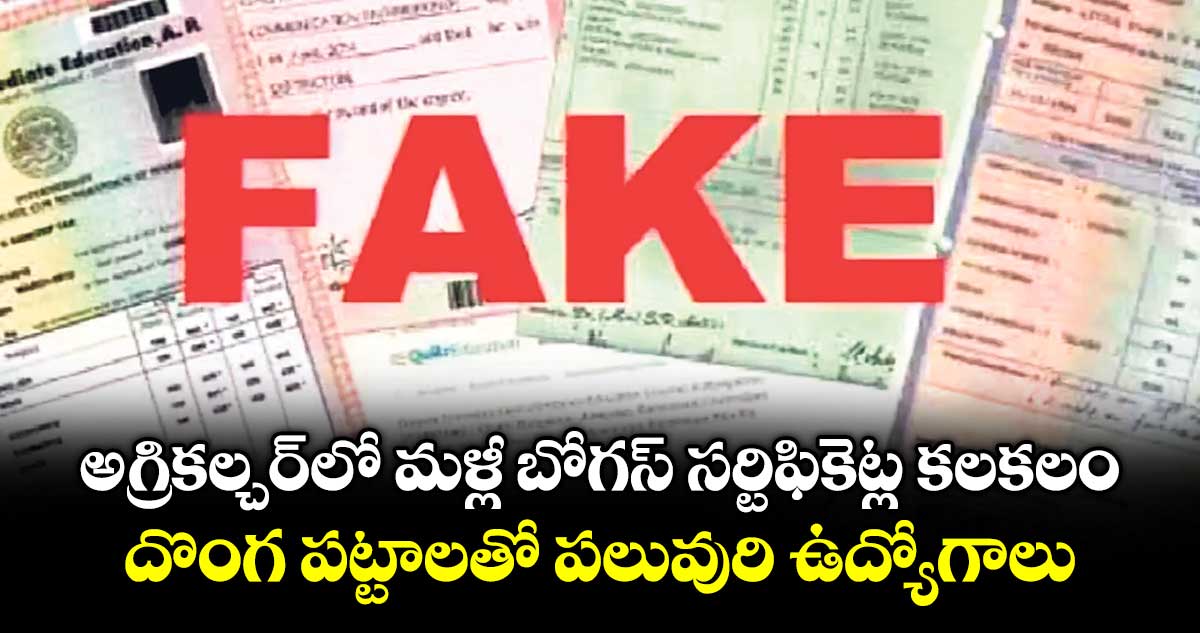 హైదరాబాద్, వెలుగు: రాష్ట్ర వ్యవసాయ శాఖలో బోగస్ అగ్రికల్చర్ డిగ్రీలు, డిప్లొమాలతో ఉద్యోగాలు పొందిన వారి వ్యవహారం మళ్లీ సంచలనం సృష్టిస్తోంది. గత ప్రభుత్వ హయాంలో జరిగిన అక్రమాలు ఇప్పుడు ఒక్కొక్కటిగా వెలుగులోకి వస్తున్నాయి. 2005 నుంచి దొంగ సర్టిఫికెట్లతో ఏఈఓ (అసిస్టెంట్ ఎక్స్టెన్షన్ ఆఫీసర్)లు, ఏఓలు, ఏడీఏ, జేడీఏ స్థాయి అధికారులుగా పనిచేస్తున్నారనే ఆరోపణలు వస్తున్నాయి. అగ్రికల్చర్ డిప్లొమా చదవకుండానే ఫోర్జరీ చేసిన దొంగ సర్టిఫికెట్లతో ఉద్యోగాలు పొంది దర్జాగా కొనసాగుతున్నారు.