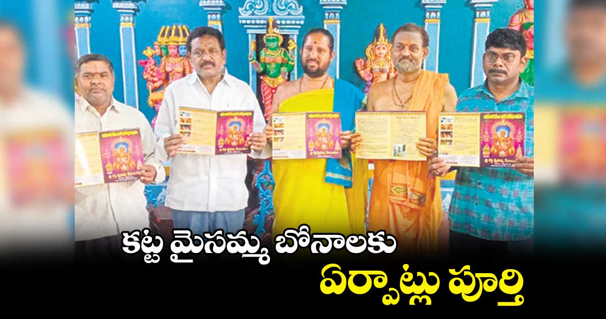 ముషీరాబాద్/మెహిదీపట్నం/పద్మారావునగర్, వెలుగు: లోయర్ ట్యాంక్ బండ్ కట్ట మైసమ్మ ఆలయంలో ఈ నెల 16,17 తేదీల్లో జరగనున్న బోనాల ఉత్సవాలకు ఏర్పాట్లు పూర్తయ్యాయి.సిటీ నుంచే కాకుండా రాష్ట్రంలోని వివిధ జిల్లాల నుంచి భక్తులు పెద్ద సంఖ్యలో తరలివచ్చి అమ్మవారిని దర్శించుకుంటారని ఆలయ వ్యవస్థాపక మెంబర్ గౌతమ్ కుమార్, ఈవో సాంబశివరావు తెలిపారు. ఆదివారం ఉదయం అమ్మవారికి పంచామృత అభిషేకం, ప్రత్యేక పూజలు ఉంటాయన్నారు.