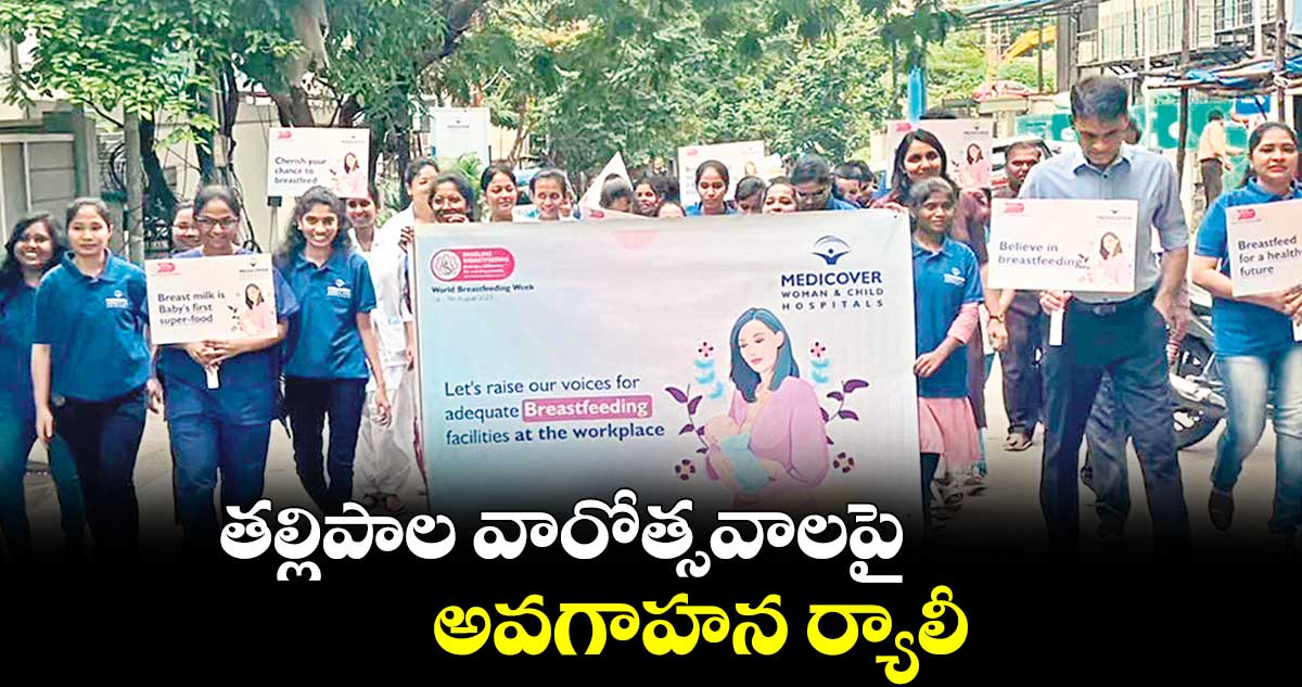 మాదాపూర్, వెలుగు : తల్లిపాల వారోత్సవాలపై మంగళవారం మాదాపూర్మెడికవర్విమెన్అండ్చైల్డ్హాస్పిటల్స్డాక్టర్లు, సిబ్బంది అవగాహన ర్యాలీ నిర్వహించారు. హాస్పిటల్నుంచి ఐకియా సెంటర్వరకు నిర్వహించిన ఈ ర్యాలీలో తల్లి పాల వలన శిశువుకు లభించే పోషకాలు, ఉపయోగాలపై పీడియాట్రిక్ డిపార్ట్ మెంట్ డైరెక్టర్ డా. రవీందర్రెడ్డి అవగాహన కల్పించారు.