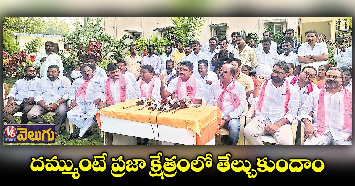 తిమ్మాపూర్, వెలుగు: తెలంగాణ ఉద్యమంలో ఆట,పాటలతో ప్రజల్ని ఏకం చేసిన ఎమ్మెల్యే రసమయిని ఎదుర్కొనే శక్తి ఎవరికీ లేదని, ధైర్యముంటే ప్రజాక్షేత్రంలో తేల్చుకుందామని టీఆర్ఎస్ జిల్లా అధ్యక్షుడు జీవీ రామకృష్ణారావు సవాల్ విసిరారు. గుండ్లపల్లి లో ఎమ్మెల్యే బాలకిషన్ పై జరిగిన దాడికి నిరసనగా ఆదివారం ఎమ్మెల్యే క్యాంపు ఆఫీస్లో ఆయన మాట్లాడారు. పార్టీని ప్రజల్లోకి తీసుకెళ్లాలని కాంగ్రెస్ జిల్లా అధ్యక్షుడిగా కవ్వంపల్లి సత్యనారాయణను నియమిస్తే యువతను, కార్యకర్తలను గూండాలుగా తయారు చేస్తున్నారని విమర్శించారు. భవిష్యత్లో కాంగ్రెస్ నుంచి టికెట్వచ్చినా తమ కుటుంబ సభ్యులు తప్ప ప్రజలెవరూ కవ్వంపల్లికి ఓట్లు వేయరన్నారు. సమావేశంలో గన్నేరువరం జెడ్పీటీసీలు రవీందర్ రెడ్డి, శేఖర్ గౌడ్, ఎంపీపీ రమణారెడ్డి, లీడర్లు పాల్గొన్నారు.