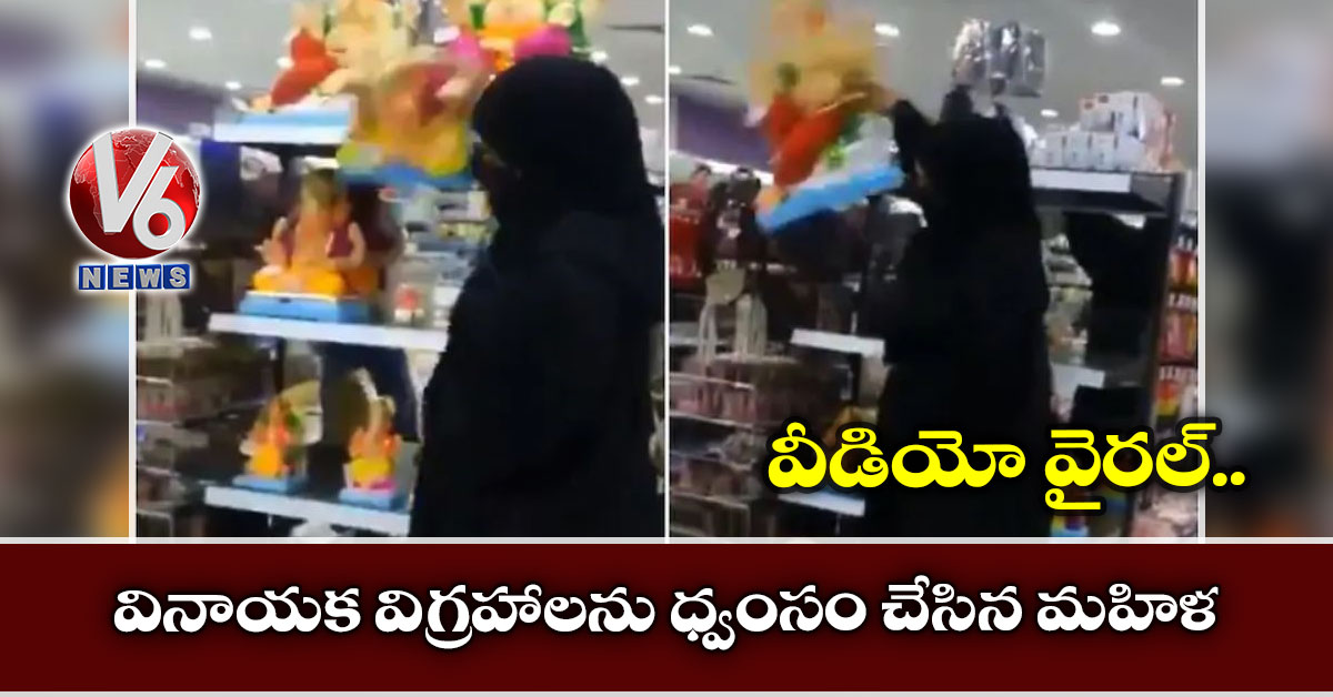 న్యూఢిల్లీ: బుర్ఖాలో వేసుకున్న మహిళ బహ్రెయిన్లోని సూపర్ మార్కెట్లో వినాయకుడి విగ్రహాలను ధ్వంసం చేసిన వీడియో సోషల్ మీడియాలో వైరల్ అవుతోంది. గణేశ్ చతుర్థి రాబోతున్న నేపథ్యంలో గణపతి విగ్రహాలను సదరు సూపర్ మార్కెట్లో కొనుగోళ్ల కోసం ఓ షెల్ఫ్లో ఉంచారు. బుర్ఖాలో ఉన్న ఓ మహిళ అక్కడికి వచ్చి విగ్రహాలను తీసుకొని ఒక దాని తర్వాత ఇంకొకటి కిందకు విసిరి కొట్టింది. వారించడానికి వచ్చిన షాప్ అటెండెంట్ను ఆ మహిళ అరబిక్లో ఏదో అనడాన్ని వీడియోలో చూడొచ్చు. ముస్లిం దేశంలో గణపతి విగ్రహాలను అమ్మడంపై సదరు మహిళ అభ్యంతరం తెలిపినట్లు తెలుస్తోంది.